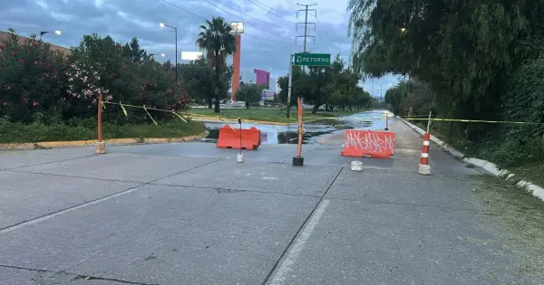 La Secretaría de Seguridad y Protección Ciudadana (SSPC) recordó que continúa el cierre vial e un tramo del bulevar Río Santiago por desfogue controlado de agua de la presa San José.