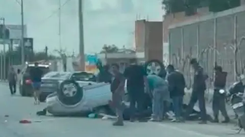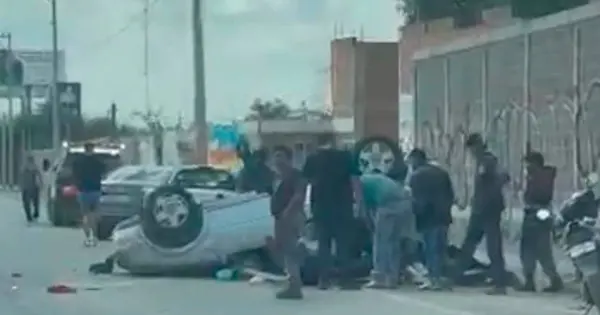 Un automóvil que circulaba a alta velocidad por el Anillo Periférico Norte, sufrió aparatosa volcadura a la altura del puente de Peñasco, en donde luego de impactarse contra un poste de señalética acabó con con las llantas hacia arriba pero por suerte no hubo lesionados graves.