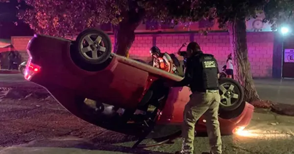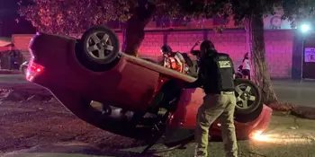 Un automóvil que circulaba a velocidad inmoderada, sufrió aparatosa volcadura en el Anillo Periférico Oriente próximo a la avenida Ricardo B. Anaya, donde por suerte no se registraron personas lesionadas.