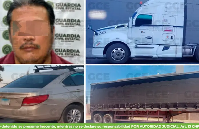 La dependencia informó que Oficiales de la GCE, recuperaron un tractocamión Kenworth, modelo 2020 en color blanco robado con violencia el 20/02/2026 en la Zona Industrial, y un remolque de transporte de carga modelo 2011 en color azul con reporte de robo sin violencia el 05/02/2026 en Cándido Navarro, Soledad de Graciano Sánchez.
