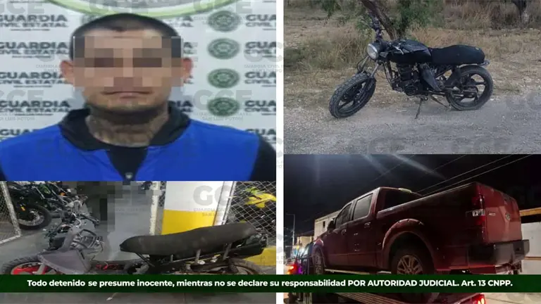 En acciones adicionales, elementos de la corporación localizaron otra motocicleta en la zona oriente de la ciudad, así como una camioneta sin placas en Villa de Reyes, ambas con estatus de robo vigente.