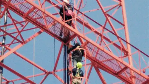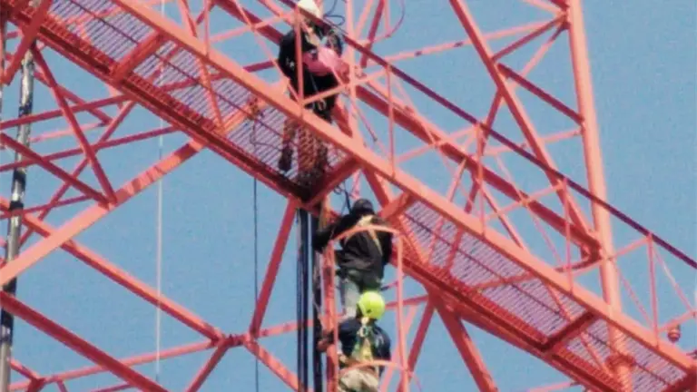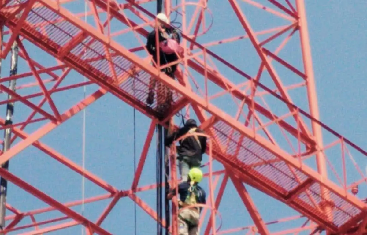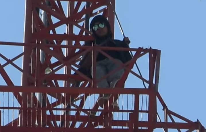 Cerca de las 11 de la mañana, los trabajadores de una empresa de uniformes observaron que un hombre joven subió la antena y que se había estacionado en el último lugar donde una persona puede estar de pie, en la estructura de la antena, mientras fumaba.