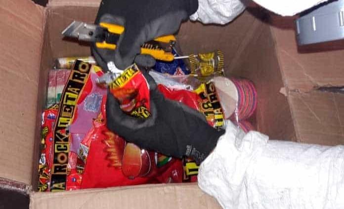Aproximadamente a las 4:30 horas, al realizar una revisión aleatoria en el centro de distribución regional del aeropuerto, con apoyo de un binomio canófilo, se localizó una caja de cartón, procedente de Querétaro, con destino a Nuevo Laredo, Tamps, en donde venía dos bolsas de plástico con diferentes tipos de dulces, una de ellas con la leyenda de “Rockaleta”, que contenía 35 envolturas de paleta, cada una con polvo blanco granulado con las características propias de la metanfetamina (cristal), que dio un peso de un kilogramo.