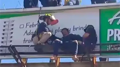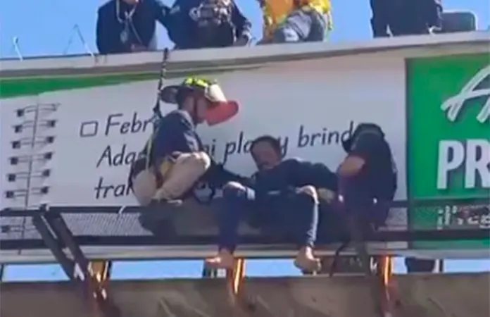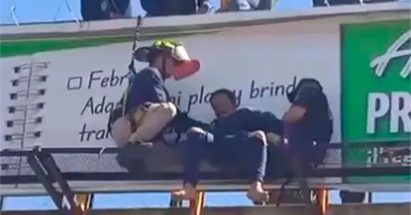 Fue cerca de la una y media de la tarde de sábado, cuando las cámaras detectaron a un hombre que se encontraba por la parte alta del puente peatonal y el cual intentaba acceder hacia la parte externa, con intenciones aparentes de lanzarse al vacío para atentar contra su vida.