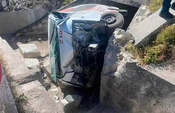 Fue al llegar al kilómetro 27, cerca de la comunidad de Derramaderos, en donde el conductor perdió el control del volante y de esta forma la unidad cayó sobre el desnivel de un puente de desagüe, en donde quedó volcada sobre su costado derecho.