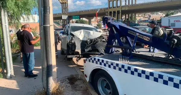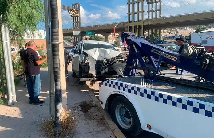 Una camioneta quedó destrozada de la parte frontal luego de estamparse contra un poste de la Comisión Federal de Electricidad, esto cuando circulaba por la avenida Juárez, próximo al bulevar Rocha Cordero.