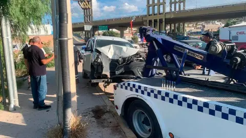 El reporte se dio poco después de las cinco de la tarde de este jueves, inicialmente la camioneta Renault de color blanco, circulaba por la avenida Juárez de sur a norte.