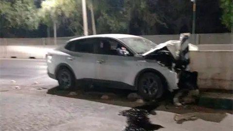 Un carro acabó en pérdida total luego de estrellarse contra el muro de contención cuando circulaba por el Anillo Periférico Norte, en el puente de las vías a Tampico, por suerte no hubo lesionados graves.