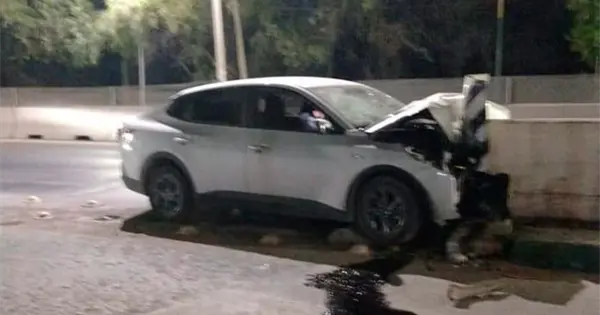 Fue al aproximarse al puente de las vías a Tampico, en que el conductor no cambió la dirección del carro y de esta forma chocó de frente contra la contención de concreto divisoria de carriles, donde inicia la parte ascendente del puente de las vías a Tampico.
