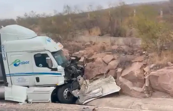 Un tráiler que circulaba por el Libramiento Norte se impacto contra el cerro luego de que aparentemente el conductor dormitó por un instante, la unidad acabó con fuertes daños en la parte frontal pero no hubo heridos graves.