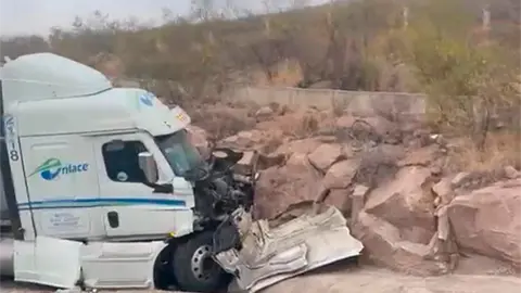 Se impacta tráiler contra cerro en Libramiento