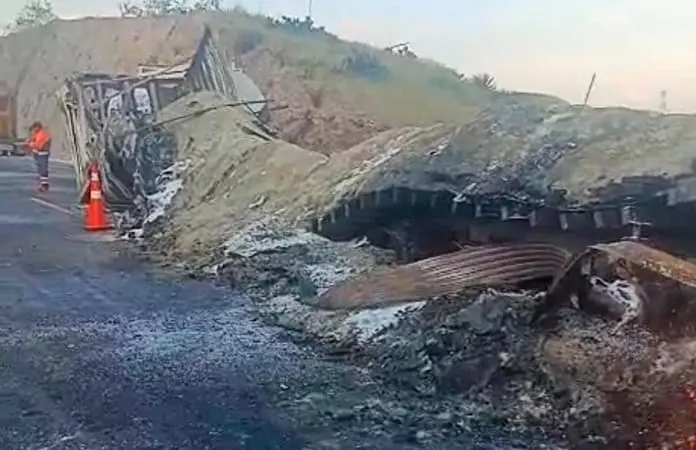 Se impactan y se incendian dos tráilers