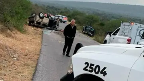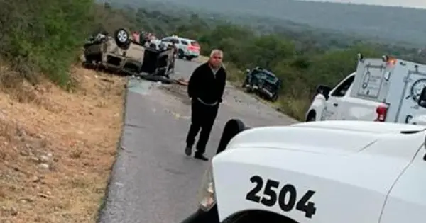 Luego del fuerte impacto la camioneta Grand Cherokee se volcó quedando con las llantas hacia arriba a la orilla del camino, mientras la otra unidad terminó en posición normal en el lado opuesto, las dos acabaron destrozadas por completo.