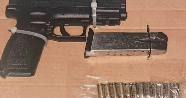 Los elementos policiacos, localizaron en el vehículo, abajo del asiento del piloto dentro una bolsa, un arma de fuego con un cargador abastecido con 12 cartuchos.