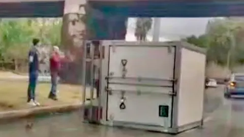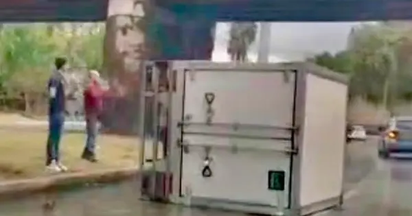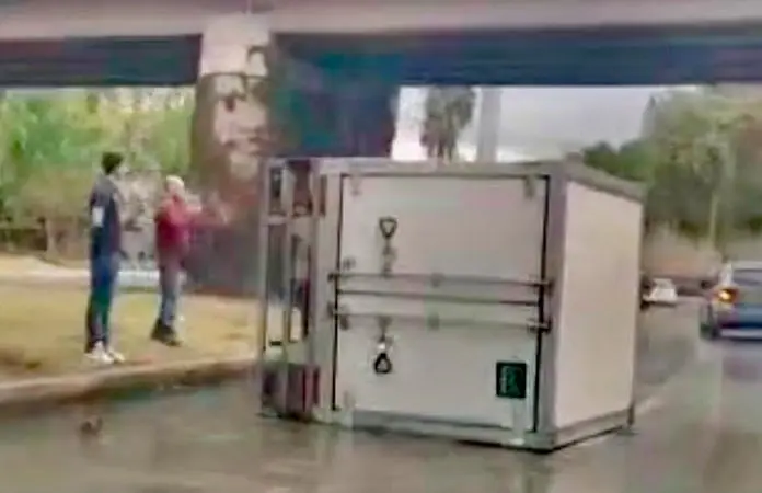 Según los primeros reportes, la camioneta transitaba con dirección hacia Muñoz cuando, presuntamente por exceso de velocidad y el piso mojado, su conductor perdió el control de la unidad. El vehículo terminó recostado sobre su costado derecho, fuera de la posición normal de circulación.