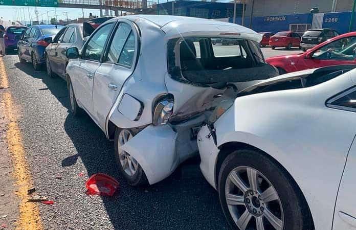 Cuatro vehículos tomaron parte en un accidente registrado en un choque por alcance registrado en la carretera a Rioverde, los daños materiales fueron considerables, pero no se registraron personas lesionadas.