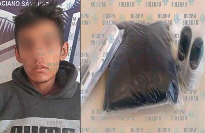 En atención a un reporte, oficiales de Seguridad Pública de Soledad detuvieron a un hombre por robo a comercio, al que sorprendieron en una tienda departamental.