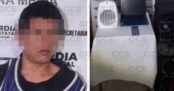 CERRITOS-. Elementos de la Guardia Civil Estatal atendieron un reporte de un presunto robo a casa habitación en el municipio de Cerritos, asegurando a un hombre con distintos electrodomésticos que ya estaba por robar.