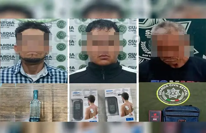 En seguimiento a los reportes atendidos en la Línea de Emergencias 9-1-1, efectivos de la Guardia Civil Estatal detuvieron en diferentes acciones a tres sujetos por el probable delito de robo.