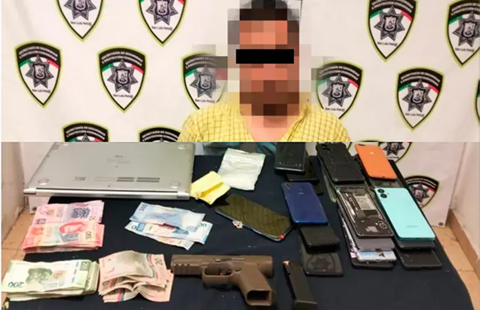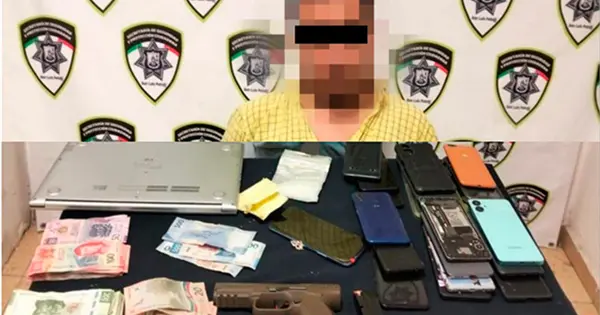 Al ser detenido le aseguraron una pistola, droga, celulares y dinero en efectivo