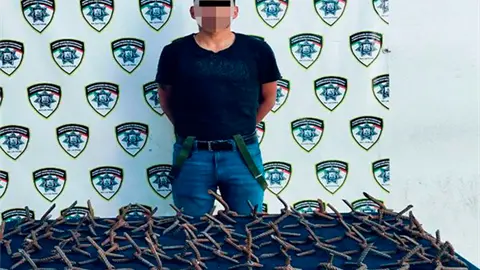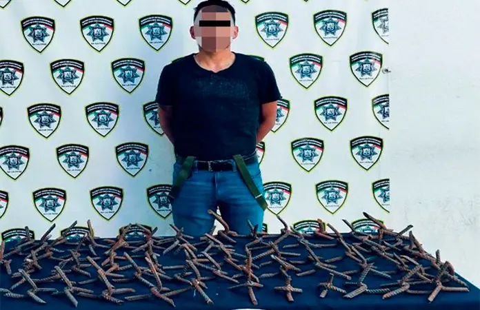Inicialmente los oficiales detectaron a un individuo que circulaba a bordo de una bicicleta transportando una garrafa y al realizar una inspección se localizaron en su interior un total de 73 artefactos metálicos fabricados en varilla y diseñados, utilizados comúnmente por delincuentes para dañar patrullas de las corporaciones policiales en persecuciones.