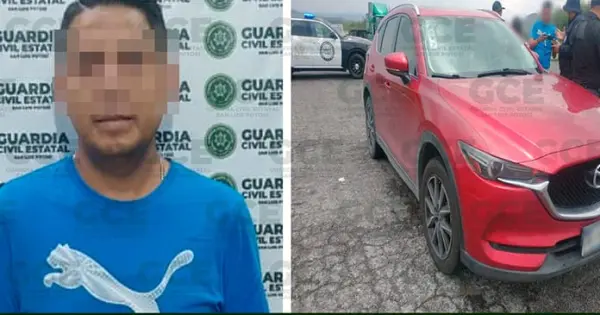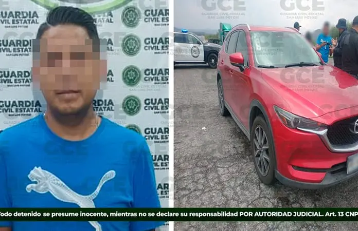 Las acciones preventivas y de seguridad implementadas en las carreteras potosinas, dieron como resultado la detención de Carlos “N” de 39 años de edad, quien fue detectado cuando conducía una camioneta Mazda modelo 2018 color rojo, que resultó con reporte de robo en la ciudad de Guanajuato.
