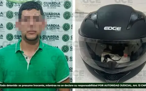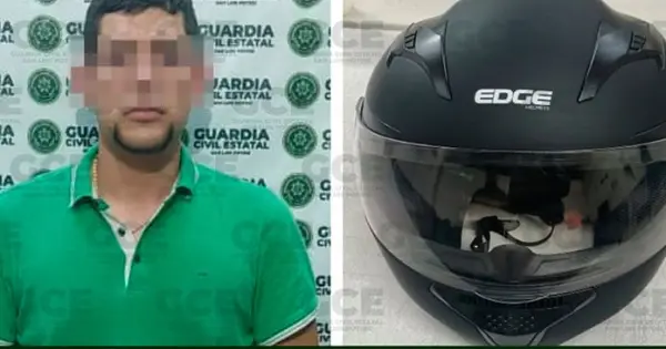 El presunto, fue detenido en una tienda comercial de la avenida Muñoz, en la colonia Hacienda de Bravo, con un casco de motocicleta color negro, además de ser señalado como partícipe de robos a comercio en distintas plazas y centros comerciales de la capital potosina.