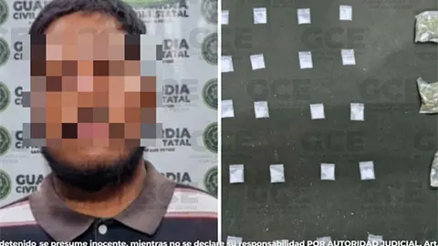 VILLA DE RAMOS. -Un supuesto vendedor de droga, fue detenido por agentes de la Guardia Civil Estatal que lo sorprendieron cuando realizaban recorridos de seguridad por el municipio de Villa de Ramos, enfocados en preservar la paz de las familias.