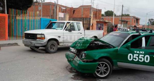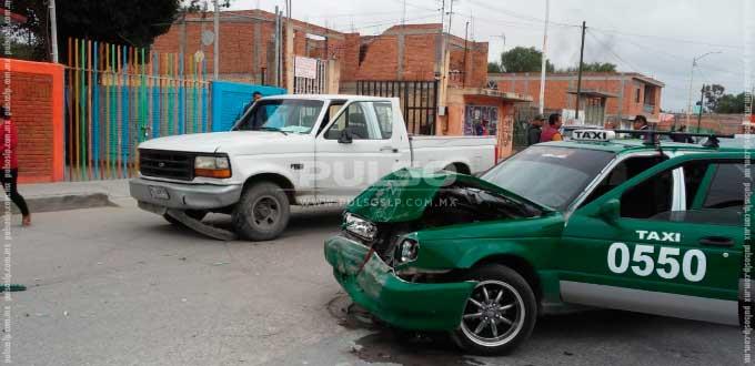 El accidente se registró en el cruce de las calles Girasol y Josefa Ortiz de Domínguez, donde se impactaron un taxi con número económico 0550 y una camioneta Ford F150 color blanco.