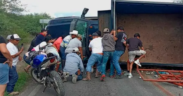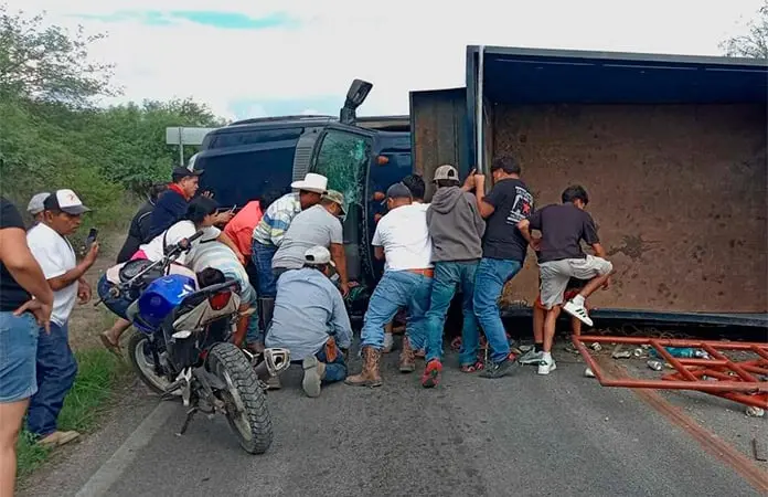 Los hechos ocurrieron al mediodía de este domingo cuando una camioneta de tres toneladas color azul, tipo redilas, circulaba por la carretera federal 69 en su tramo Rioverde- San Ciro de Acosta y viajaban tres personas que al parecer iban tomando cerveza ya que se encontraron latas vacías.