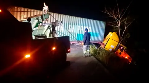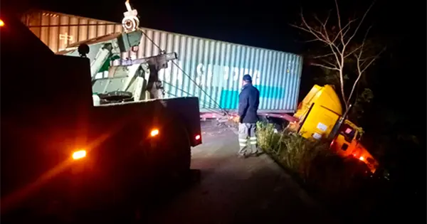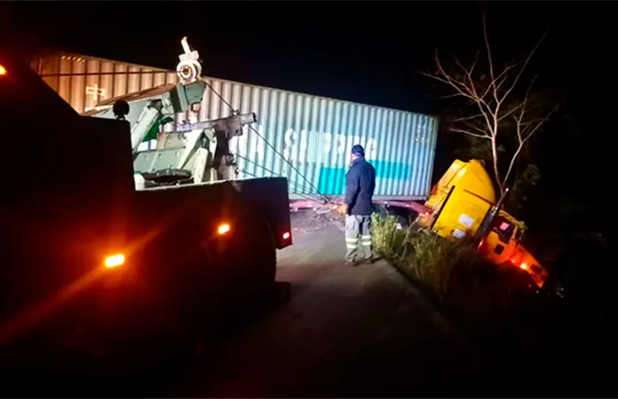 El incidente sucedió la noche del domingo, en el kilómetro 50, a la altura del lugar conocido como El Serranito. La unidad involucrada fue un tráiler marca Kenworth, color amarillo, que transportaba un contenedor.