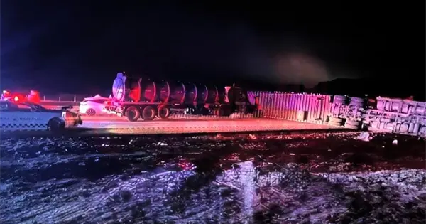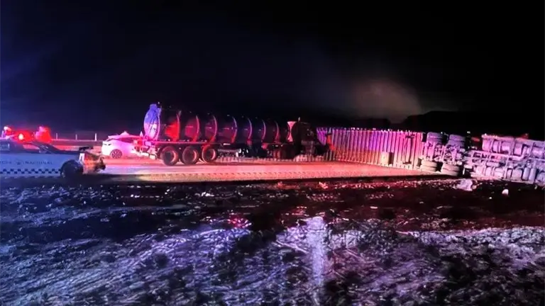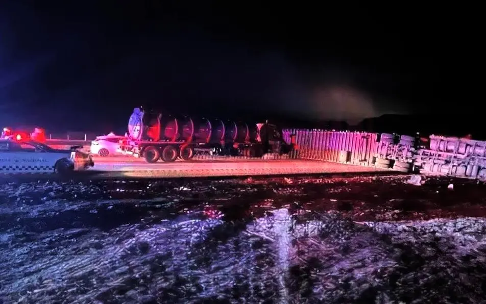 Tráiler volcado bloqueó la Carretera 57