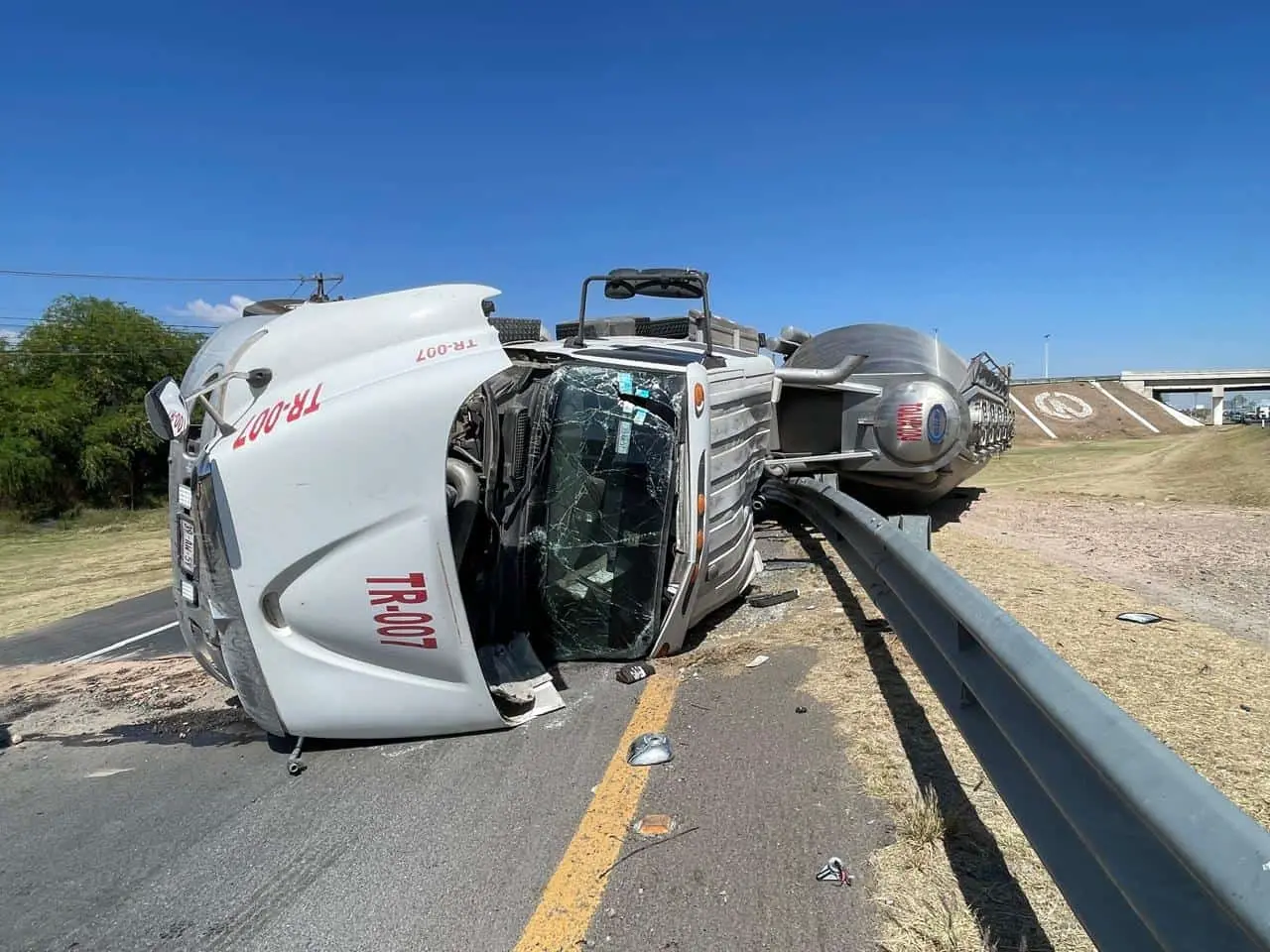 Un tráiler con tolva cargada de melaza de maíz volcó la mañana de este martes en el libramiento de Villa de Reyes, en su incorporación hacia la carretera 57 con dirección a Querétaro; el incidente solo dejó daños materiales.