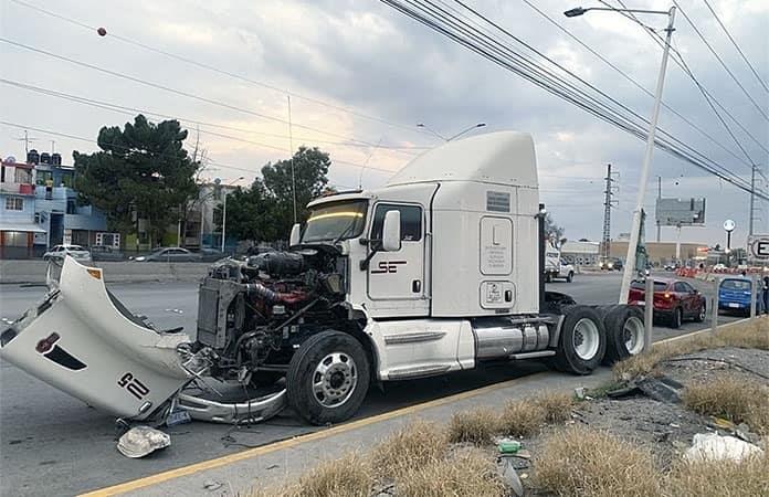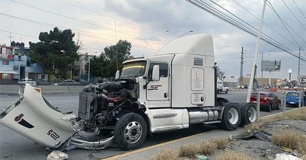 Luego de chocar contra cuatro vehículos, el conductor de un tracto camión intentó darse a la fuga y acabó estampándose contra un poste de luz, esto en el Periférico Oriente en la cima del puente de la avenida Ricardo B. Anaya.