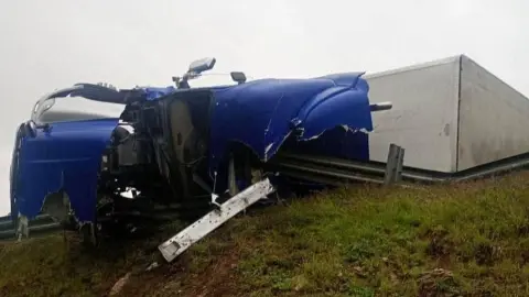 Esta mañana se registró un choque con volcadura de un tráiler, donde el conductor resultó lesionado.