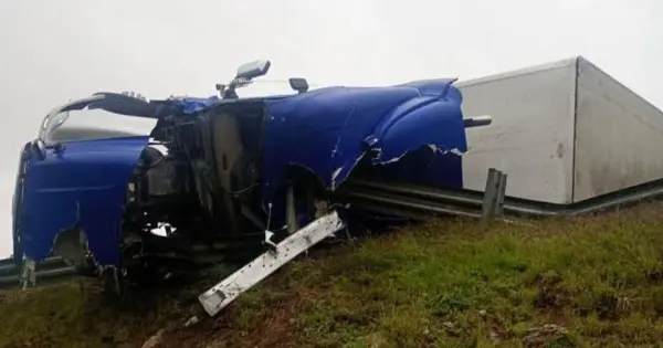 El conductor circulaba sobre carretera 57, pero perdió el control de la unidad y chocó con las barras de acero laterales para luego volcar y finalmente quedar sobre su lado izquierdo, obstruyendo los carriles en su totalidad.