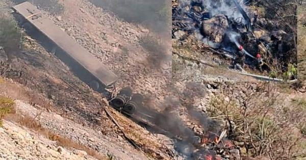 Fue a la altura del kilómetro 98, poco antes de llegar a la entrada de Rayón, en donde el conductor perdió el control del volante y de esta forma la pesada unidad se fue a un barranco de unos 300 metros de profundidad, en donde quedó volcado y el tractocamión empezó a arder ante la fuga de combustible por daños en los depósitos.