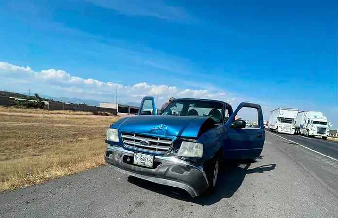 El accidente se registró antes del mediodía de este viernes cuando un un tráiler de doble remolque de color negro, circulaba sobre la carretera 57 con dirección a Querétaro y al llegar al km 175+500, próximo al entronque de la carretera a Villa de Reyes, chocó por alcance contra una camioneta Ford tipo pick up de color azul que transitaba adelante.