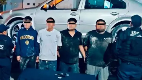 Los detenidos fueron identificados como Luis Manuel “N” de 30 años, José Ricardo “N” de 21 años, conductor y copiloto, así como los pasajeros Daniel “N” y César “N”, de 19 y 20 años respectivamente.