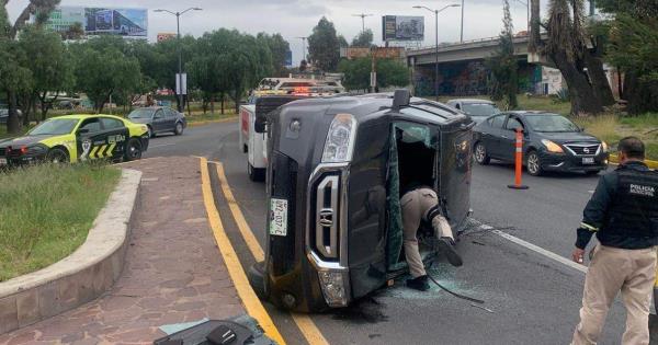 Los hechos después de las 8:00 horas de hoy, cuando el conductor de una camioneta conducía sobre la lateral de la llamada "diagonal", pero al llegar a la glorieta de Mariano de Jiménez pierde el control hacia su derecha chocando con el peralte y terminar volcado.