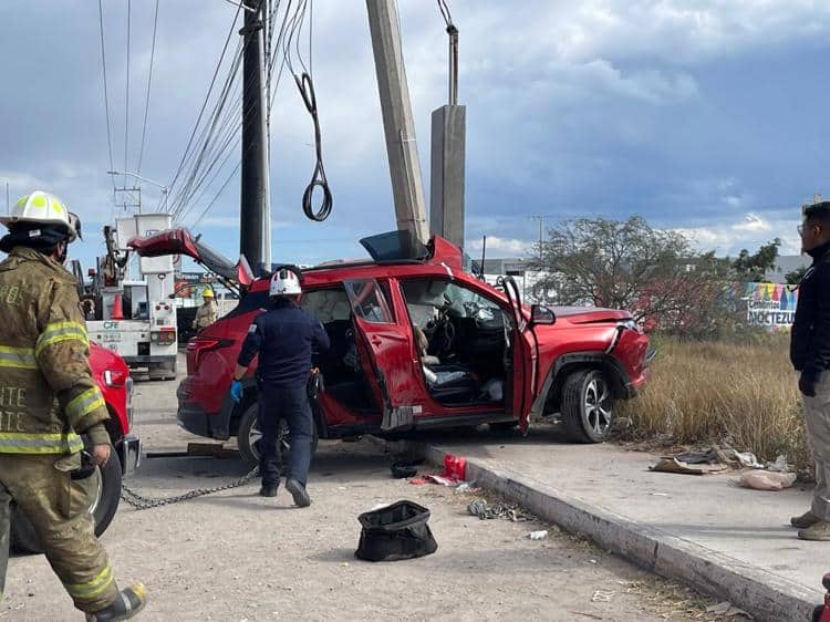 Todos sucedió cuando la conductora de una camioneta Nissan perdió el control de la unidad chocando con un vehículo Nissan March y al desviar su ruta se estrelló en un poste de concreto de la CFE. El vehículo compacto terminó fuera del camino en un lote baldío.