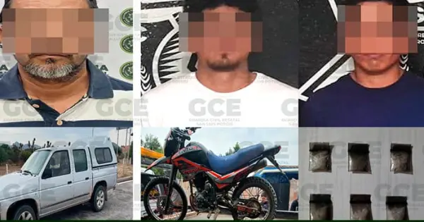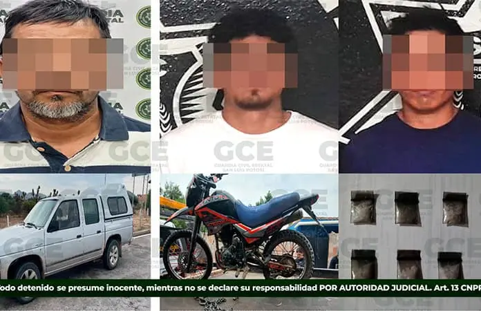 Labores preventivas y de seguridad, implementadas por la Guardia Civil Estatal en todo el territorio potosino, derivó en la detención de tres personas por la tripulación de vehículos con reporte de robo, además del aseguramiento de varias dosis de enervantes.