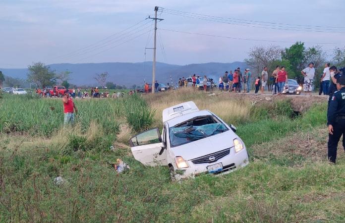 El sedán lo manejaba Francisco, de 70 años de edad, quien se desplazaba con dirección de Tambaca a Tamasopo, y al llegar a la curva conocida como El Banco perdió el control del volante y se salió de la carretera, volcando la unidad.