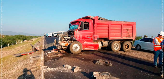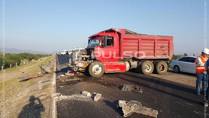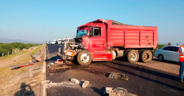 Ahí, se había registrado el choque de frente entre una camioneta Ford, color gris plata y un camión de volteo, color rojo, arrojando miles de pesos en daños materiales.