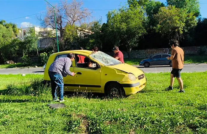 El accidente ocurrió cerca de las cuatro de la tarde, cuando el vehículo circulaba en dirección del Periférico Poniente hacia la carretera a Matehuala. De acuerdo con los reportes, el conductor perdió el control del volante hacia la izquierda, lo que provocó que el auto se saliera del camino y diera una vuelta completa antes de quedar nuevamente en posición normal.