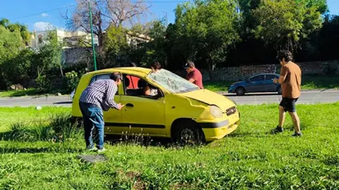 Un Atos amarillo volcó en Río Santiago; un ocupante resultó lesionado y fue trasladado al Hospital Central.