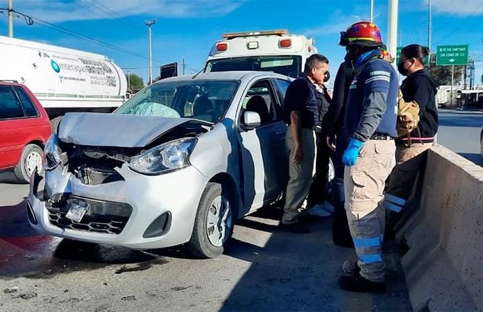Al arribar al puente de la avenida San Pedro, el carro chocó de frente contra un automóvil Jetta color blanco, el cual a su vez fue proyectado hacia adelante y se impactó contra una camioneta Ford Explorer que transitaba en la misma dirección.