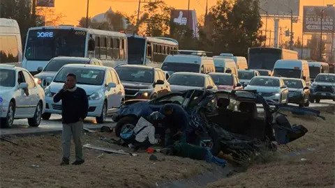 En la rúa a México chocaron un auto y una camioneta, que acabaron destrozadas