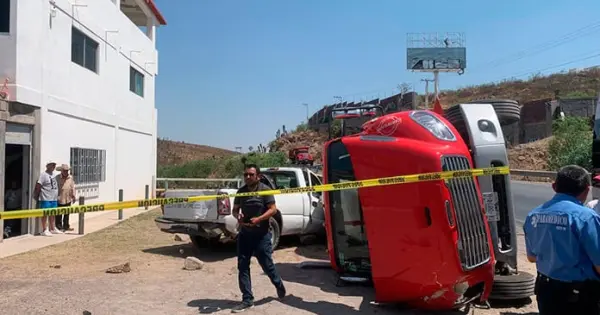 El hecho se suscitó a las 10:30 de la mañana, cuando una pipa repartidora de la empresa Gas Nieto, de la marca Freightliner de color rojo, circulaba sobre la carretera Guadalajara con dirección a esta ciudad.