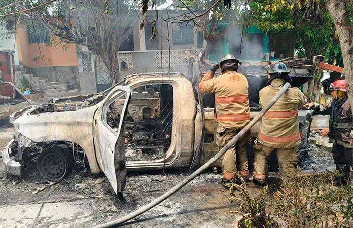 CIUDAD VALLES.- Una camioneta de la Comisión Federal de Electricidad (CFE) terminó completamente calcinada, luego de incendiarse presuntamente a causa de una falla mecánica.